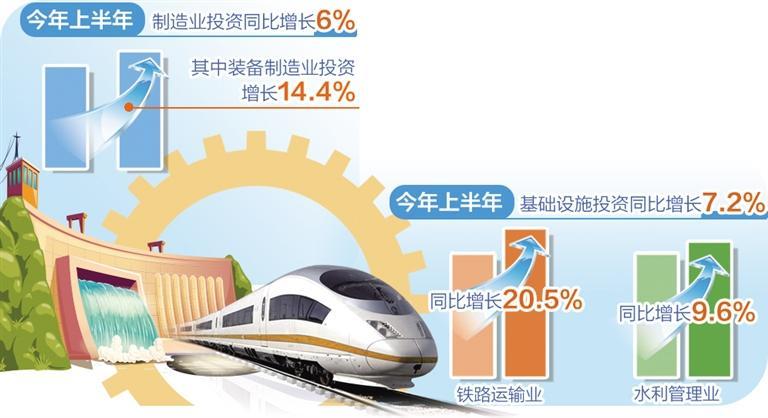 上半年,各地区各部门积极推动交通、水利等重大基础设施建设,成效持续显现。基础设施投资同比增长7.2%,其中铁路运输业、水利管理业投资分别增长20.5%和9.6%。