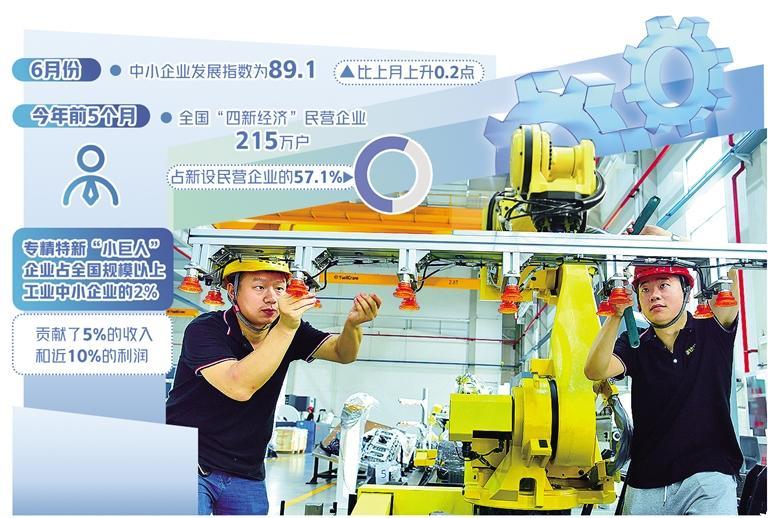随着相关政策措施持续发力生效,6月份,中小企业发展指数为89.1,比上月上升0.2点,结束连续3个月下降态势。“止跌回升一方面源于消费市场的持续恢复,餐饮、旅游等行业的特点是生产与消费同时发生,带动效应较强;另一方面源于政策性资金所支持的2700多个投资项目已全部开工,涉及交通、水利、能源等领域,为中小企业创造机遇。”中国中小企业协会专职副会长朱玉说。
