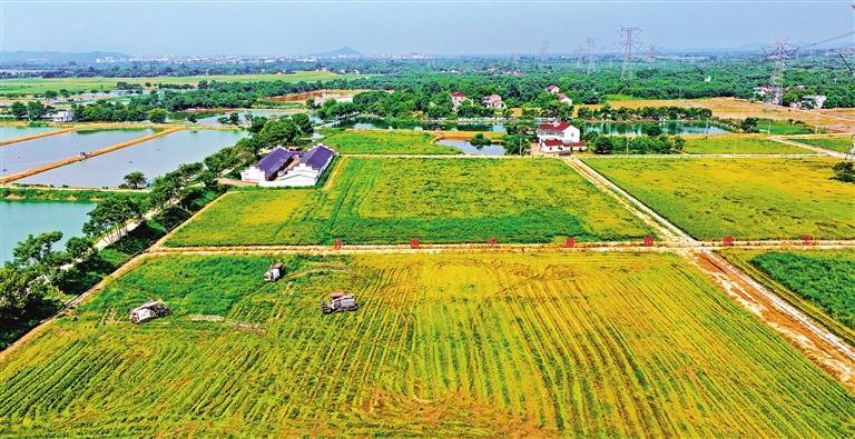7月25日,浙江省湖州市长兴县泗安镇禧祉村千亩稻渔生态区早稻喜获丰收,农机在稻田里来回穿梭收割早稻。近年来,泗安镇大力开展“非粮化”整治工作,打造“农之梦”千亩稻渔生态区,发展“稻鱼共生”新模式,全力保障粮食安全,促进农业丰收、农民增收。