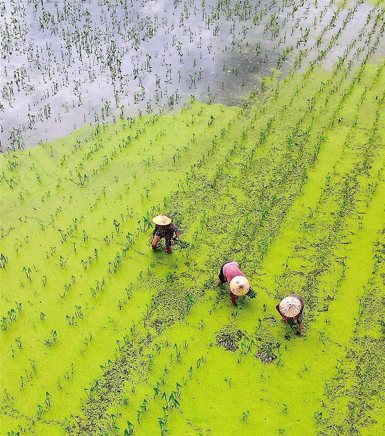 7月27日,在江苏省如皋市磨头镇丁冒村,农民在种植茨菇苗。近年来,磨头镇因地制宜优化农业产业结构,以丰沛的优质水域为依托,积极引导农民规模化、集约化种植莲藕、茨菇、茭白等水生经济作物,促进特色种植业发展、拓宽农民增收途径,推动乡村振兴。