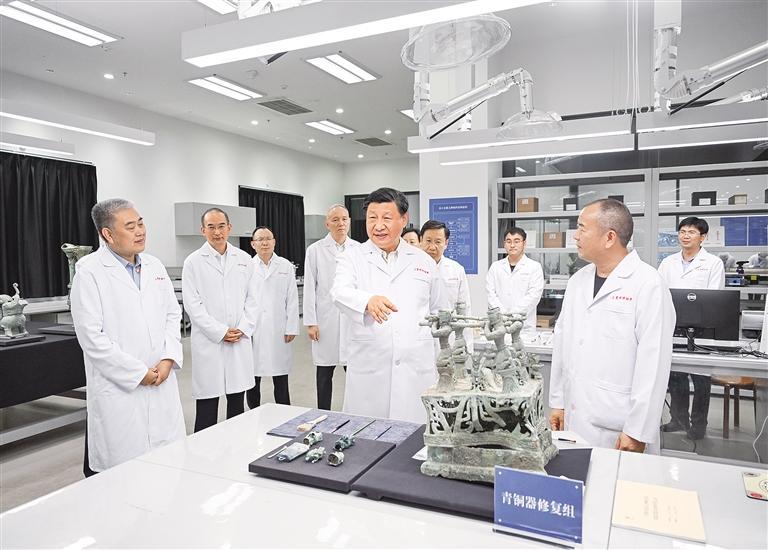习近平十分关心汉江流域历史文化传承和生态保护。7月29日,在返京途中,习近平走下列车,在陕西省委书记赵一德、省长赵刚陪同下,来到汉中市考察。习近平参观汉中市博物馆有关历史文物展陈,了解汉中历史文化、文物保护情况。他指出,文物承载灿烂文明,传承历史文化,维系民族精神。要发挥好博物馆保护、传承、研究、展示人类文明的重要作用,守护好中华文脉,并让文物活起来,扩大中华文化的影响力。汉中藤编等非物质文化遗产久负盛名,要发展壮大特色产业,更好带动群众增收致富。离开博物馆时,附近的乡亲们围拢过来热情欢呼“总书记好”。习近平亲切地对大家说,我在2008年汶川大地震抗震救灾时来过汉中,这些年一直牵挂着这里。这次来,看到这里发展变化很大,城市井然有序,很欣慰。他祝愿大家工作好、生活好、家庭幸福。