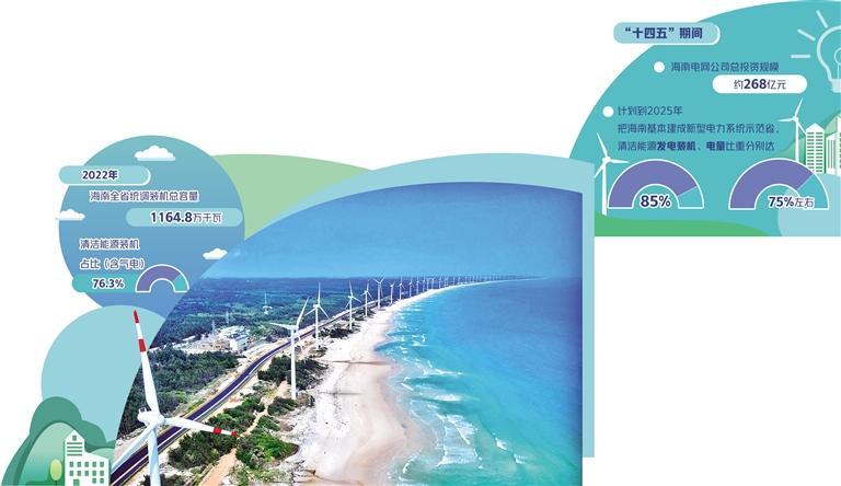 “十四五”期间,海南电网公司总投资规模约268亿元,重点投资“两新一重”、电力保供、新型电力系统建设、数字化转型等领域。计划到2025年,把海南基本建成新型电力系统示范省,清洁能源发电装机、电量比重分别达85%、75%左右。