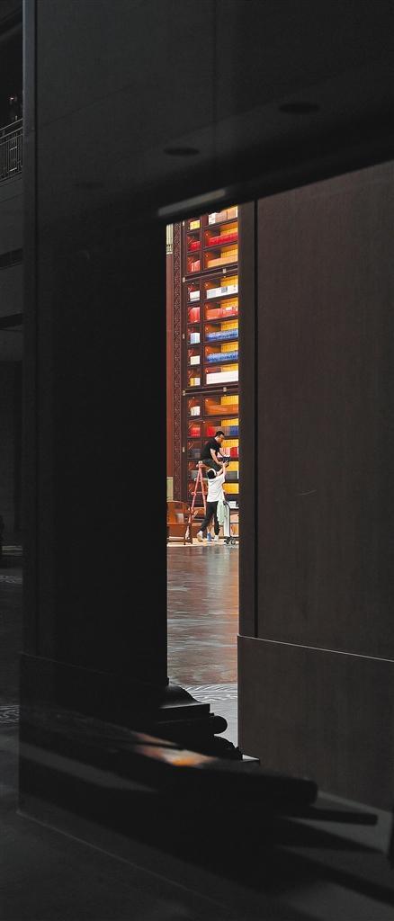 ◀中国国家版本馆中央总馆,工作人员为国家书房里的3万余册经典著作通宵编目并优化展陈。