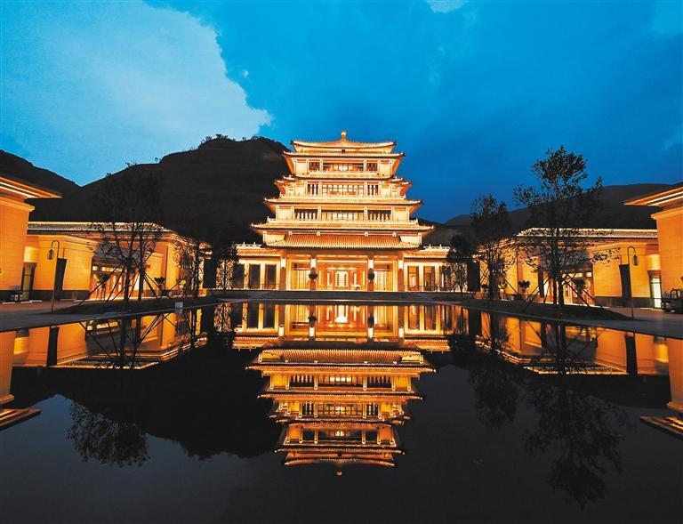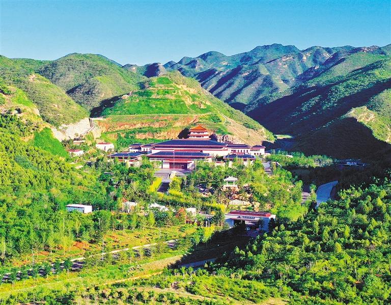 ▶中国国家版本馆中央总馆位于燕山脚下,建筑群由南向北,楼、堂、阁主体建筑掩映在山水园林环境中,体现让文化典籍“藏之名山、传之后世”的主旨。