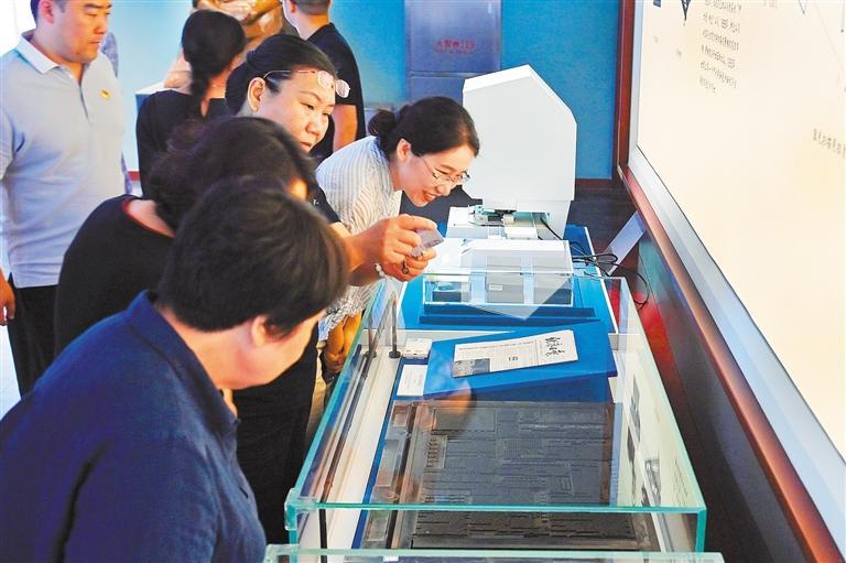 ▲中国国家版本馆版本工艺展区陈列着《经济日报》最后一块铅字版样和运用激光照排技术印刷的第一张报纸。这是我国印刷技术告别“铅与火”,跨进“光与电”时代的历史物证。