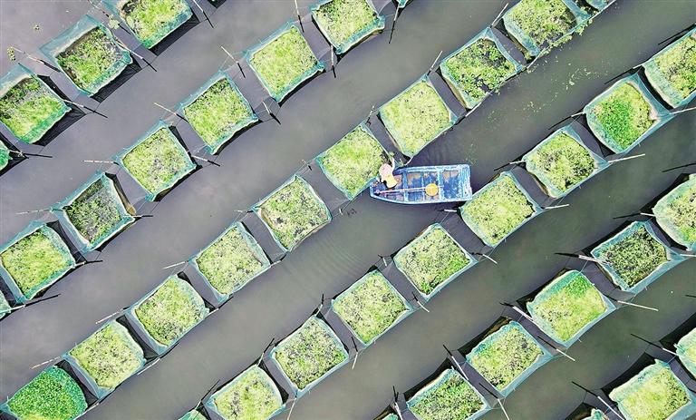 7月31日,江西省宜春市上高县翰堂镇磻村鱼鳝混养基地中,农户正在查看黄鳝生长情况。如今,黄鳝、鲈鱼养殖等已经成为当地重要的富民产业。 邹利强摄(中经视觉)