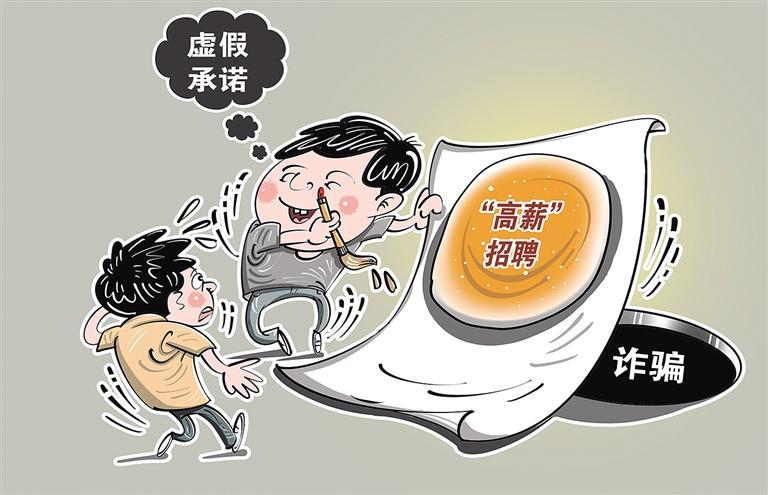 虚假承诺“画大饼”、在合同中玩“文字游戏”、成立“皮包公司”挂羊头卖狗肉……正值求职季,一些不法分子设置种种套路,以低门槛和高薪为诱饵,引诱求职者上当受骗。针对招聘诈骗频发,近期,人力资源社会保障部、中央网信办、公安部3部门发布求职招聘10个典型陷阱防范提示,帮助求职者有效识别骗局,提高风险防范意识和自我保护能力。接下来,相关部门应进一步规范网络招聘活动,对违反法律法规有关规定情节严重的,要依法严肃处理。各平台要加强对招聘单位的资质认证和信息发布人员的实名认证,规范信息发布流程,完善投诉处理机制,建立招聘企业红黑榜制度,确保发布信息真实、合法、有效。此外,求职者也应提高警惕,增强反诈骗意识,谨防“高薪”背后的陷阱。(时 锋)