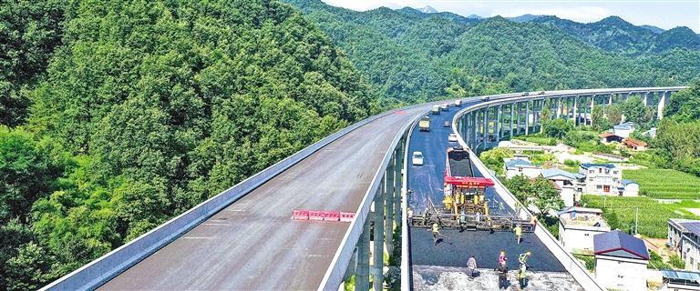 8月9日,河南省洛阳市栾川县陶湾镇栾卢高速公路建设现场,大型机械正在进行路面沥青摊铺作业。栾卢高速是河南省在建地形最复杂、桥隧比最高、施工难度最大的高速公路,建成后将进一步促进沿线地区经济发展,助力乡村振兴。