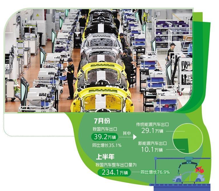 中汽协刚刚发布的7月份数据也符合这样的预测。7月份,我国汽车出口39.2万辆,同比增长35.1%。其中,传统能源汽车出口29.1万辆,同比增长23.2%;新能源汽车出口10.1万辆,同比增长87%。