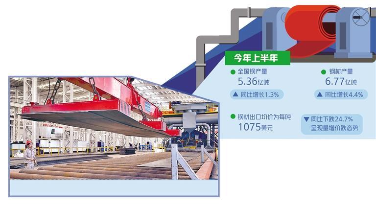 今年上半年,全国钢产量5.36亿吨,同比增长1.3%;钢材产量6.77亿吨,同比增长4.4%;钢材出口4358万吨,同比增长31.3%。与此同时,钢铁企业效益同比降幅明显,财务资金风险可控。
