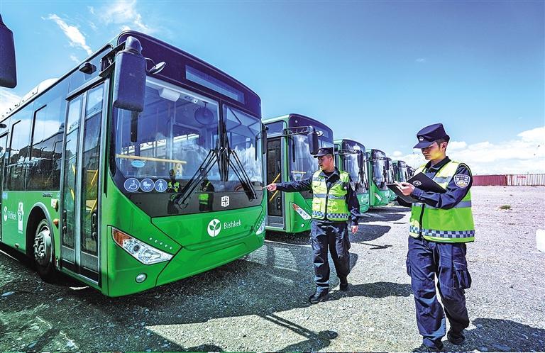 今年以来,山东聊城经济技术开发区通过一对一精准服务,助力企业开拓国际市场,今年上半年完成进出口30.5亿元,同比增长10%。其中,中通客车与吉尔吉斯斯坦签订了1000台清洁能源客车订单,创下中国对吉尔吉斯斯坦客车出口的新纪录。图为新疆吐尔尕特出入境边防检查站执勤民警对即将出口的新能源客车进行核查。赵文高摄