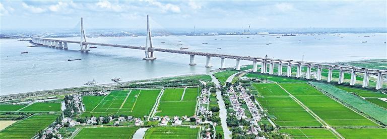 8月14日,俯瞰江苏省张家港市锦丰镇新港村长江岸线,满目青翠的树木和田野,犹如给长江筑起一道绿色篱笆。近年来,张家港对逾80公里沿江岸线开展“净化、绿化、美化”等专项行动,着力打造“最美长江岸线”。