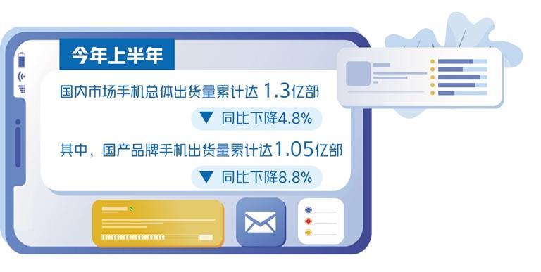中国信通院最新发布的数据显示,今年上半年,国内市场手机总体出货量累计达1.3亿部,同比下降4.8%。其中,国产品牌手机出货量累计达1.05亿部,同比下降8.8%,占同期手机出货量的81.1%。