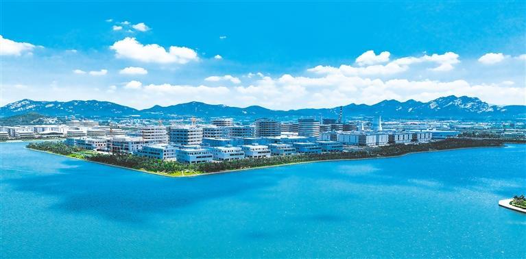 8月17日拍摄的山东省烟台市牟平区蓝色药谷·生命岛园区一角。近年来,当地以蓝色药谷·生命岛为依托,打造以生物医药产业人才为引领的创新链、产业链、资金链、人才链“四链”融合先行区,推动中科环渤海(烟台)药物高等研究院、烟台新药创制山东省实验室等创新平台与链上48家企业及8所高校一体化联动,构建产业新高地。