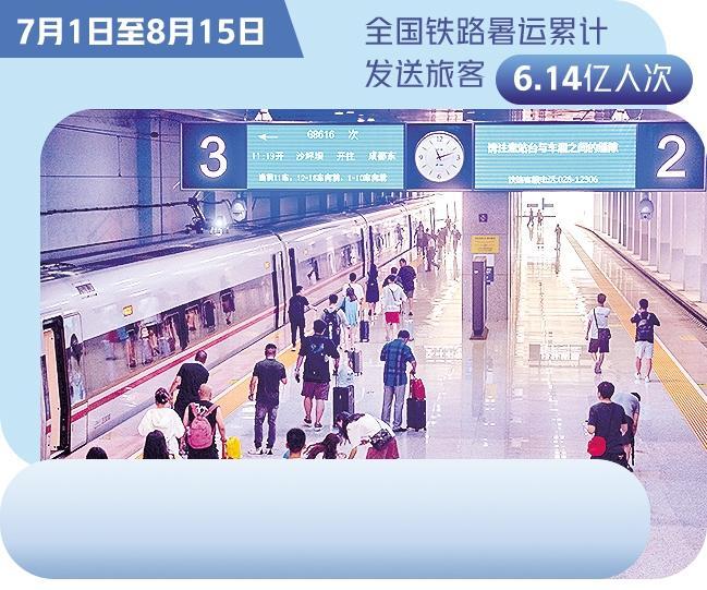 国铁集团客运部负责人介绍,随着旅游客流量持续走高,出行需求十分旺盛。铁路部门积极适应市场需求,发挥高铁成网运营优势,统筹运用新线路新装备等运力资源,精心制订列车开行方案,提升客运服务品质,确保了旅客平安有序出行。7月1日至8月15日,全国铁路暑运已累计发送旅客6.14亿人次。