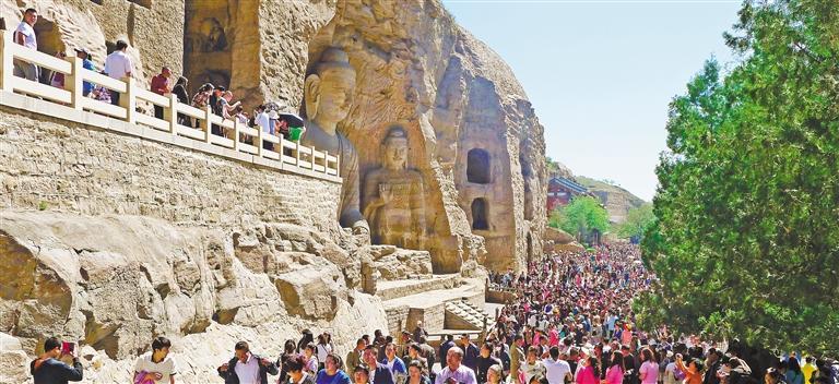 ▲位于大同市城西的云冈石窟已有1500余年的历史,2001年被联合国教科文组织列入《世界遗产名录》,每年吸引大批游客参观游览。