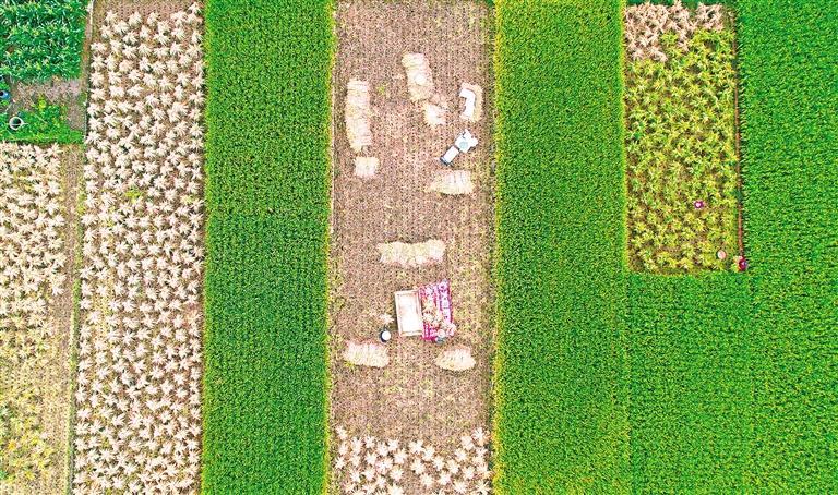 8月21日,云南省弥勒市弥阳街道禄丰社区,稻谷喜获丰收,农民趁晴好天气抢收稻谷,确保颗粒归仓。近年来,当地农村水利基础设施不断改善,农民种粮积极性高涨,科学种粮实现丰产增收。普佳勇摄(中经视觉)