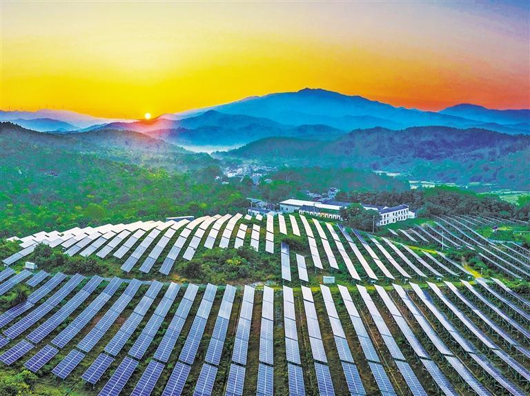 湖北省孝感市孝昌县周巷镇青山村光伏产业基地。近年来,当地积极推进光伏产业,为绿色低碳、环保发展注入清洁能源,将新兴产业与乡村闲置土地有机结合,让荒山变“金山”,实现生态利用和农民增收。胡学军摄(中经视觉)