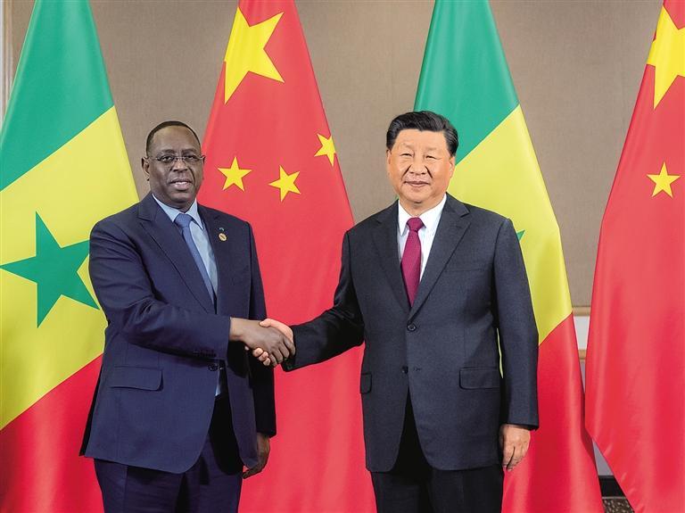 习近平指出,塞内加尔是中国在非洲重要合作伙伴。近年来,在双方共同努力下,中塞政治互信不断深化,各领域合作成果丰硕。中方坚定支持塞方为维护国家稳定和发展所作努力,愿同塞方加强相互支持,深化工业、农业、基础设施建设、人力资源开发等领域合作,共同维护正当发展权益,推动两国全面战略合作伙伴关系得到更大发展。