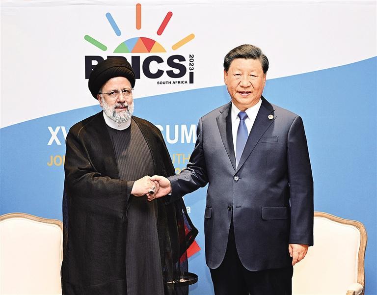 本报约翰内斯堡8月24日讯(记者田士达)当地时间8月24日上午,国家主席习近平在约翰内斯堡出席金砖国家领导人会晤期间会见伊朗总统莱希。