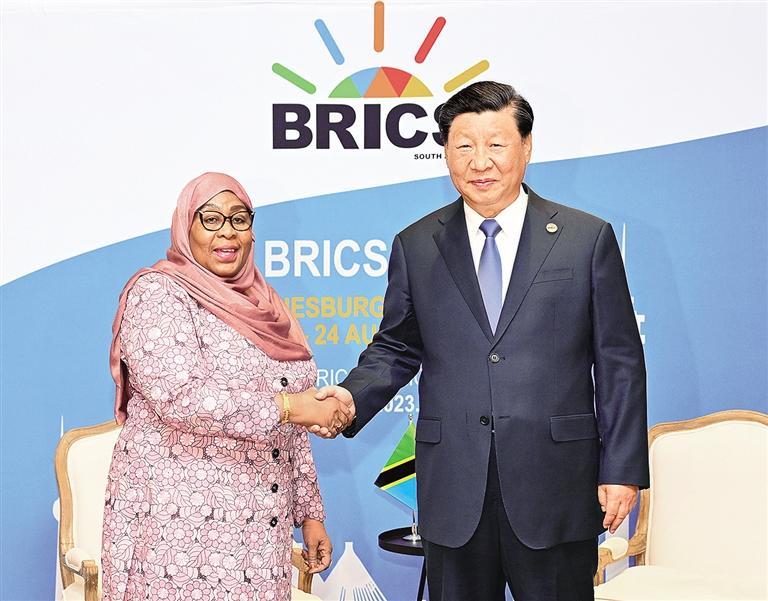 本报约翰内斯堡8月24日讯(记者田士达)当地时间8月24日上午,国家主席习近平在约翰内斯堡出席金砖国家领导人会晤期间会见坦桑尼亚总统哈桑。