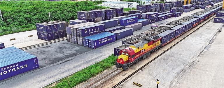 8月28日,广西首趟35吨宽体箱西部陆海新通道铁海联运班列从南宁国际铁路港驶出,由钦州港出海运往山东日照。