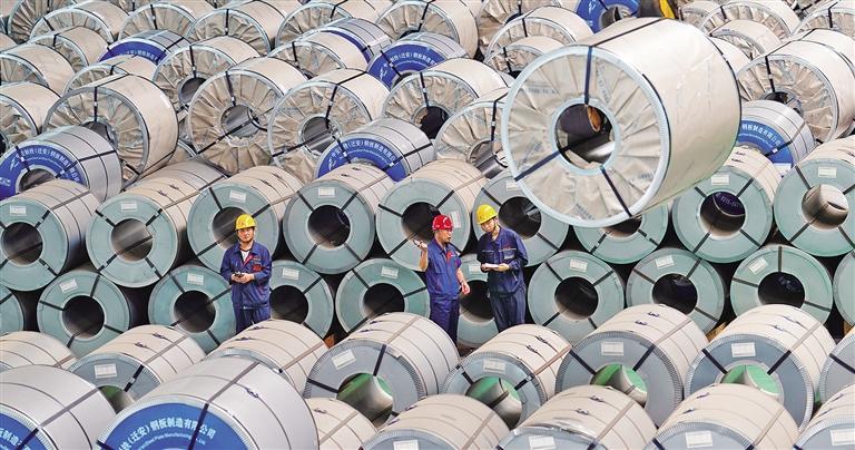 八月二十七日,河北省迁安经济开发区,一家公司镀锌铝镁钢板生产线上,工人正在加紧赶制出口板材。据统计,迁安市今年前七个月累计完成进出口总值146.3亿元,同比增长10.4%。陈 儒摄(中经视觉)