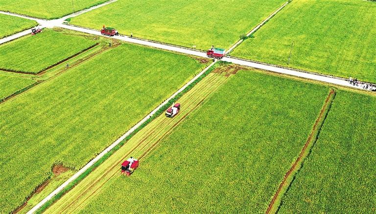 8月28日,四川省眉山市东坡区太和镇永丰村高标准农田,村民正驾驶机械收割水稻。初秋时节,四川“天府粮仓”高标准农田核心区水稻喜获丰收,当地村民抢抓晴好天气抓紧收割,确保颗粒归仓。