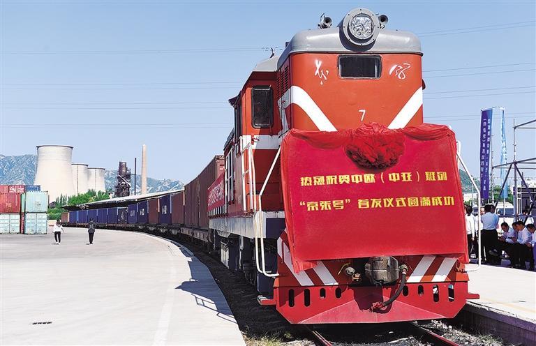 8月29日上午10点,首列满载汽配、家电、纺织品、电梯设备等物资的中欧(中亚)班列“京张号”从中国铁路北京局下花园站缓缓驶出,经新疆霍尔果斯口岸出境,驶往5100多公里外的乌兹别克斯坦。据悉,班列开通后,可以将当地各种商贸产品源源不断地运抵中亚及欧洲市场。梁 涛摄(中经视觉)