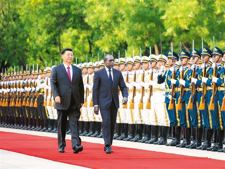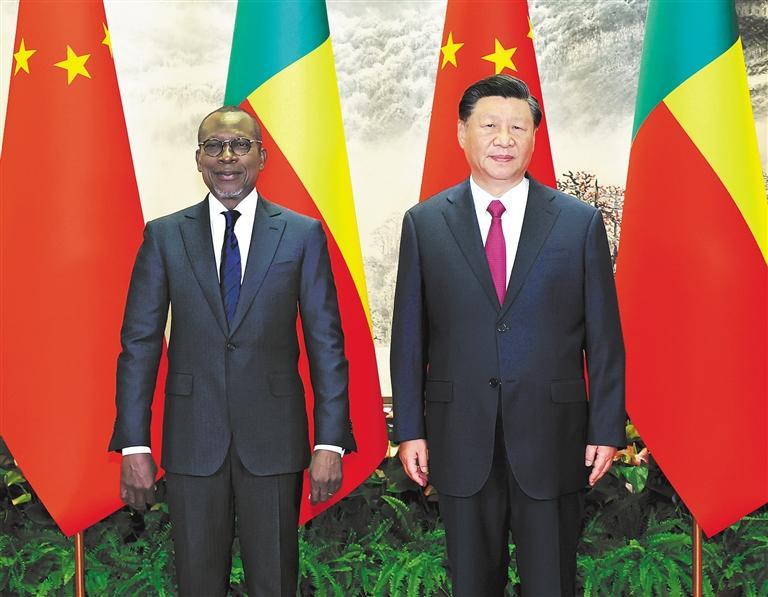 习近平指出,今年是我提出真实亲诚对非政策理念10周年。10年来,中国对非洲朋友始终以诚相待,真心实意为非洲发展提供支持,中非合作已经成为南南合作和国际对非合作的典范。中方支持非洲成为世界政治、经济、文明发展的重要一极,愿以自身新发展为非方提供新机遇,同包括贝宁在内的非洲兄弟一道,落实好中非合作论坛成果,推动共建“一带一路”倡议、全球发展倡议同非盟《2063年议程》及非洲各国发展战略深度对接,支持非洲实现经济复苏和可持续发展,携手构建新时代中非命运共同体。