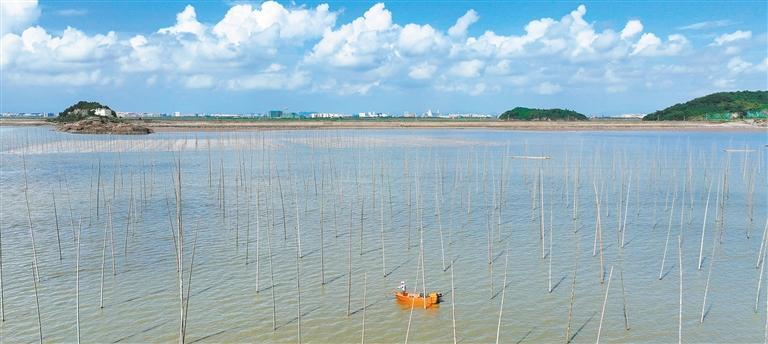 ⑥8月26日,浙江省台州市路桥区金清镇海峰村,村民在海面开展紫菜养殖作业。当地农民采用“党建+合作社+农户”模式,大力发展水上养殖,助农增收。