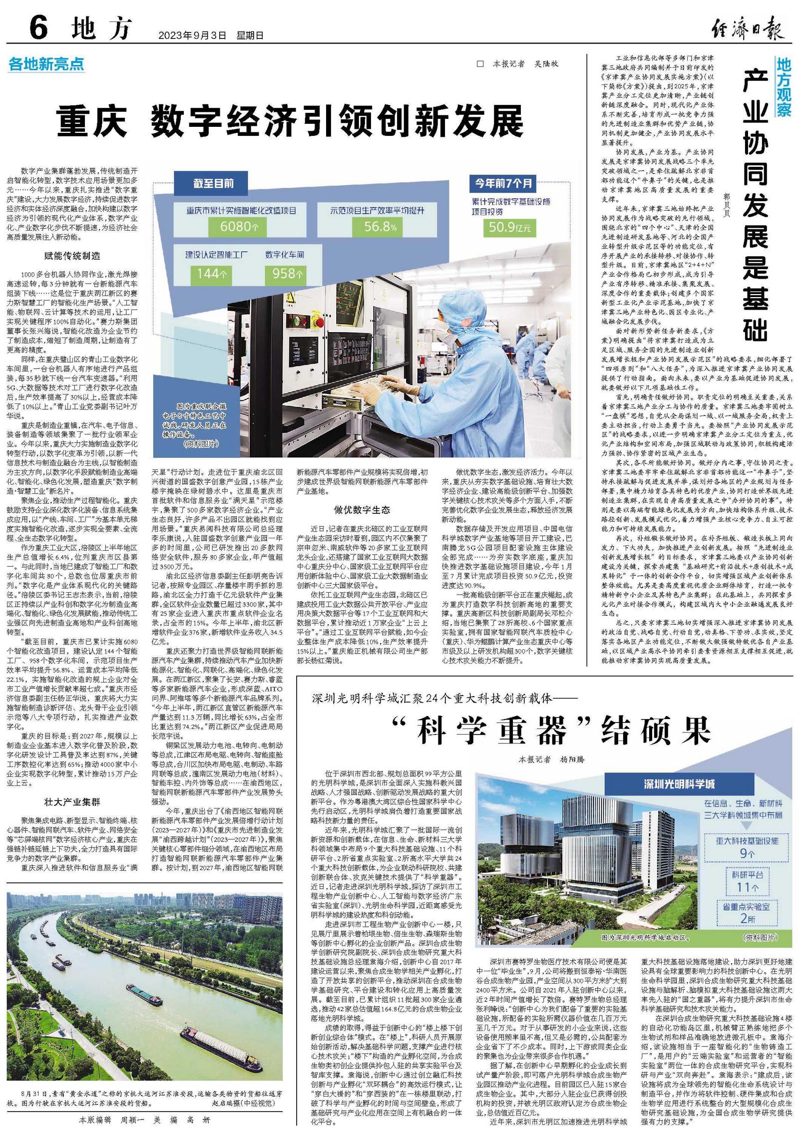 近年来,光明科学城汇聚了一批国际一流创新资源和创新载体,在信息、生命、新材料三大学科领域集中布局9个重大科技基础设施、11个科研平台、2所省重点实验室、2所高水平大学共24个重大科技创新载体,为企业联动科研院校、共建创新联合体、攻克关键技术提供了“科学重器”。近日,记者走进深圳光明科学城,探访了深圳市工程生物产业创新中心、人工智能与数字经济广东省实验室(深圳)、光明生命科学园,近距离感受光明科学城的建设热度和科创动能。