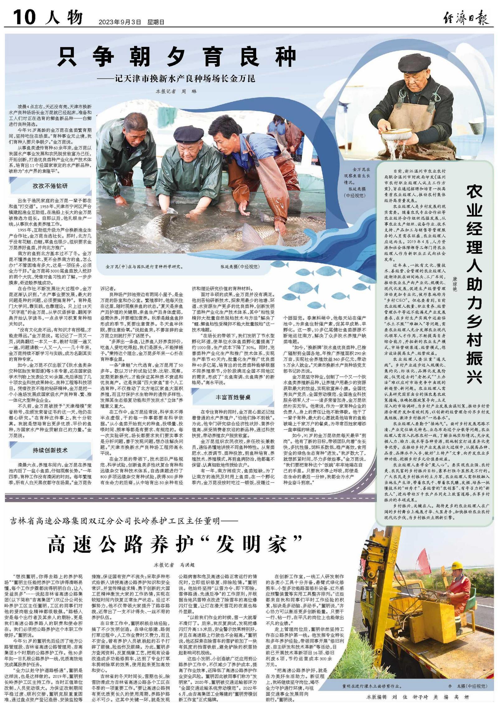 不久前,金万昆被授予“天津楷模”荣誉称号,在颁发荣誉证书的这一天,他仍在潜心研究。“在育种这件事上,我十分较真。我就是想培育出更多优质、平价的鱼种,为国家水产种业贡献自己的力量。”金万昆说。