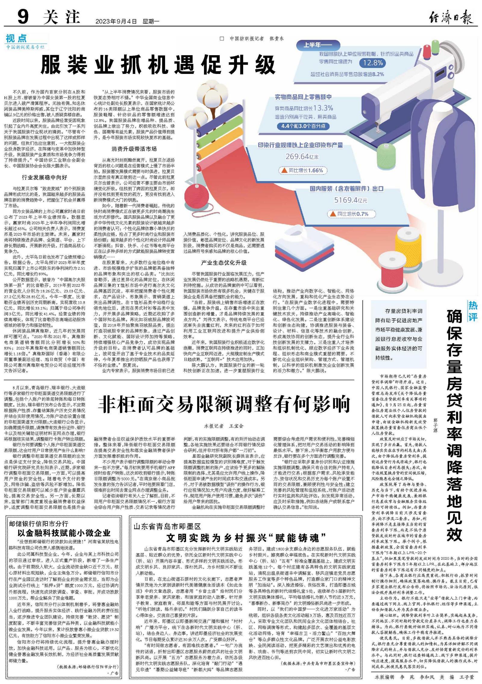 近段时间以来,服装品牌经营受困现象引起了业内外高度关注,由此引发了一系列关于我国服装行业现状的猜测。“尽管有个别服装品牌在发展过程中出现了这样或那样的问题,但我们也应注意到,一大批服装企业投身数字经济,在阵痛与变革中加快转型升级,我国服装产业素质和市场竞争力得到了持续提升。”中国纺织工业联合会副会长、中国服装协会会长陈大鹏表示。