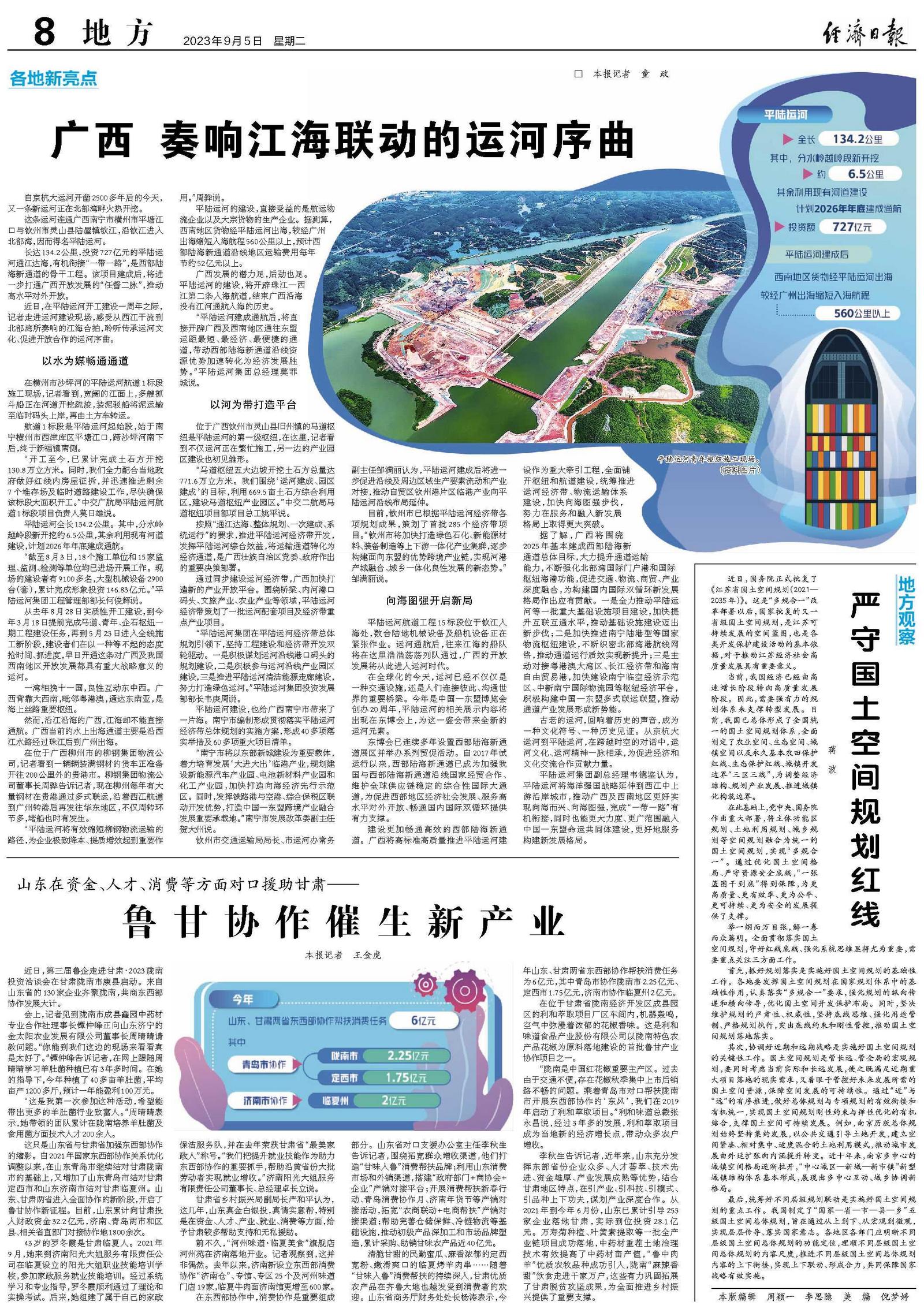 建设更加畅通高效的西部陆海新通道。广西将高标准高质量推进平陆运河建设作为重大牵引工程,全面铺开枢纽和航道建设,统筹推进运河经济带、物流运输体系建设,加快向海图强步伐,努力在服务和融入新发展格局上取得更大突破。