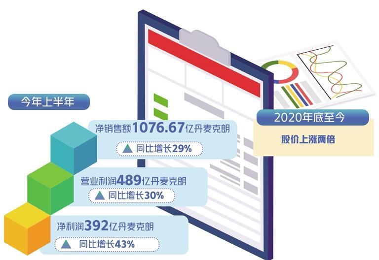 作为一家专门服务糖尿病患者的制药商,在过去3年里,诺和诺德凭借横扫欧美市场的拳头产品“司美格鲁肽”等赢得了市场的广泛关注,公司营收、利润双双大幅增长。8月上旬,诺和诺德公布2023年上半年财报显示,今年上半年,诺和诺德净销售额为1076.67亿丹麦克朗,同比增长29%;营业利润达489亿丹麦克朗,同比增长30%;实现净利润392亿丹麦克朗,同比增长高达43%。强劲的销售带动该公司股价一路飙升,自2020年底以来,诺和诺德股价已上涨两倍。