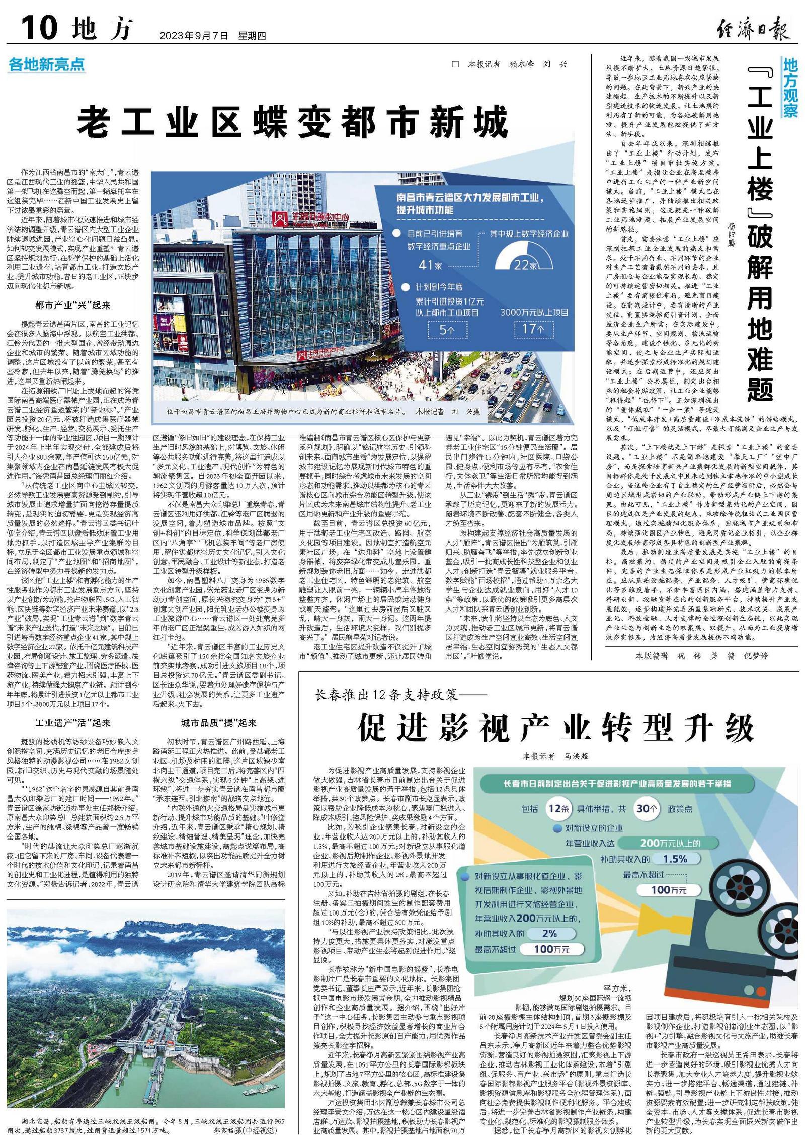 如今,南昌塑料八厂变身为1985数字文化创意产业园,紫光药业老厂区变身为新动力青创空间,原长兴物流变身为“京3+”创意文创产业园,阳光乳业老办公楼变身为工业旅游中心……青云谱区一处处荒芜多年的老厂区正涅槃重生,成为游人如织的网红打卡地。