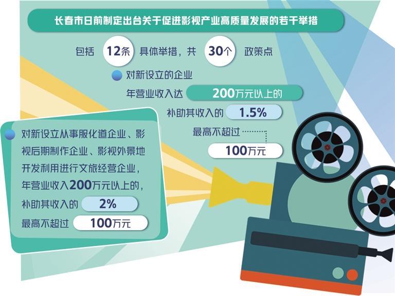 比如,为吸引企业聚集长春,对新设立的企业,年营业收入达200万元以上的,补助其收入的1.5%,最高不超过100万元;对新设立从事服化道企业、影视后期制作企业、影视外景地开发利用进行文旅经营企业,年营业收入200万元以上的,补助其收入的2%,最高不超过100万元。