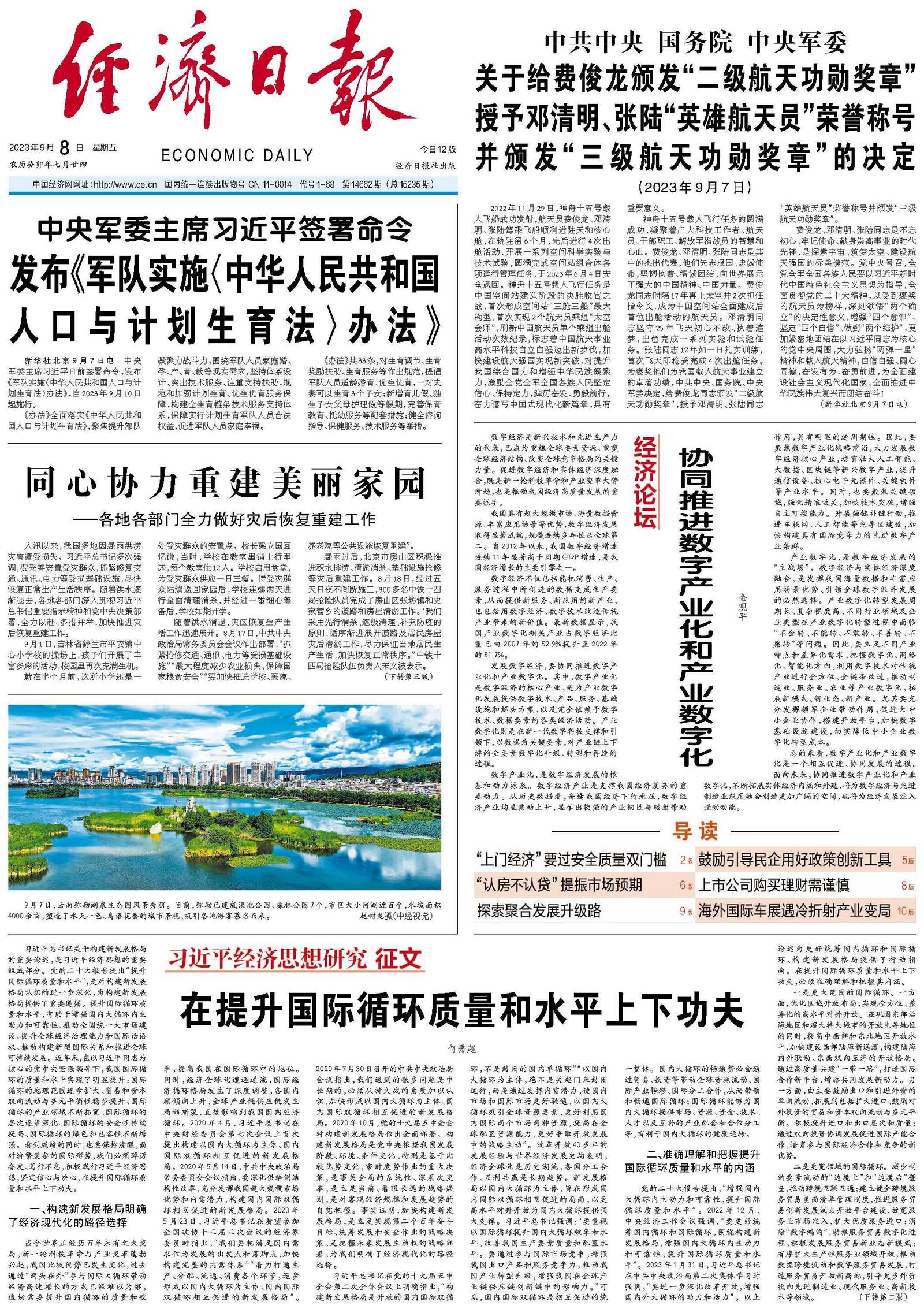 五是更加绿色与包容的国际循环。提升国际循环的质量和水平,应深度参与绿色低碳等国际合作,发展绿色贸易,培养绿色动能,这是贸易可持续发展的重要内容。促进绿色投资,引导外资进入节能环保、绿色服务等产业,将绿色发展作为中国企业海外投资的社会责任,推动绿色低碳技术“走出去”。同时,提升国际循环质量和水平,还体现在营造开放包容的国际合作环境,推动多边、区域等层面贸易规则协调,不断完善全球经济治理,推动形成更多务实合作成果,使各国人民共同享有发展机遇和实惠。