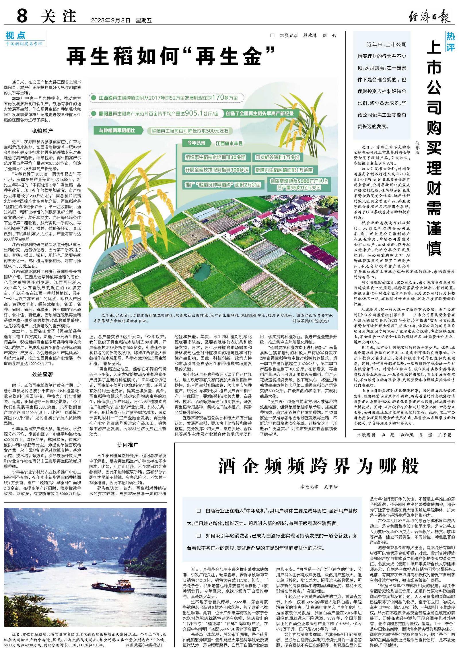 2023年中央一号文件提出,推动南方省份发展多熟制粮食生产,鼓励有条件的地方发展再生稻。什么是再生稻?种植现状如何?发展前景怎样?记者走进较早种植再生稻的江西各地进行了探访。