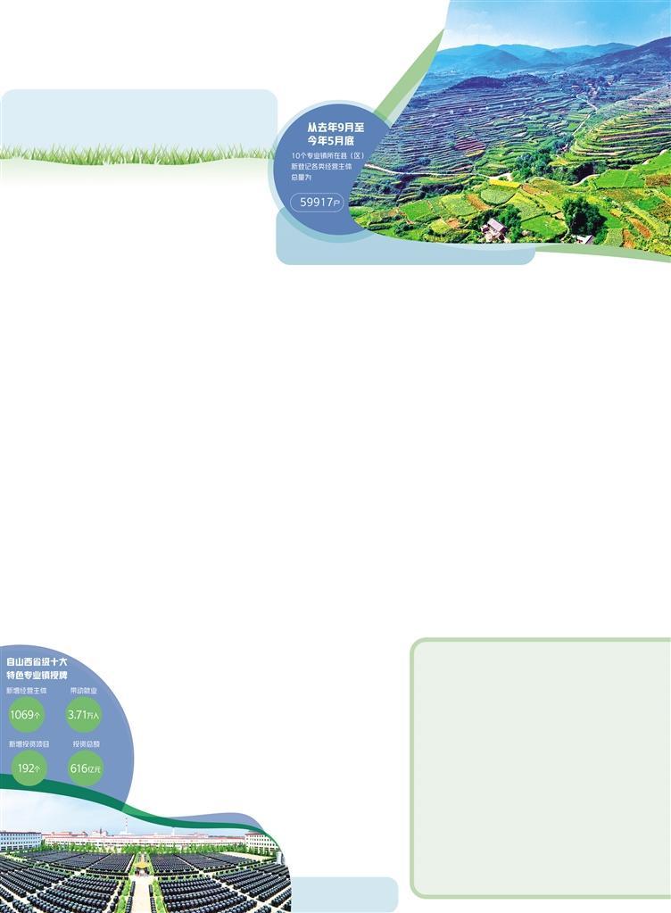 “聚起来了”是记者在调研采访中时常听到的一句话。山西专业镇建设“积沙成塔”“聚星成火”,聚起一个个产业集群。专业镇建设发挥着经营主体集聚平台的功能。形成产业集群的一个显著变化是经营主体增加了。山西省市场监管局局长鞠振说,市场监管部门积极作为,精准滴灌,靶向施策,推动专业镇高质量发展,各专业镇主导行业以及相关上下游关联行业都有较快发展。据介绍,从2022年9月至2023年5月底,10个专业镇所在县(区)新登记各类经营主体总量为59917户,其中:企业10954户,占比18.28%;个体工商户48720户,占比81.31%;农民专业合作社243户,占比0.41%。