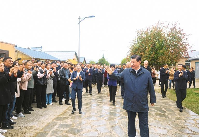 离开小院时,当地群众在道路两旁热情欢送总书记。习近平亲切地对大家说,北极村前景可期。希望广大干部、群众共同努力,把乡村建设得更好、把生态保护得更好、让人民生活得更好,共同奔向中国式现代化的美好未来。