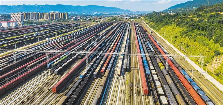 9月7日,位于重庆市沙坪坝区的铁路兴隆场编组站,货运列车整装待发。近年来,兴隆场车站着眼“数字化+集约化”,推进数字技术与运输组织深度融合,为中欧班列、西部陆海新通道班列高效运行提供运力保障。