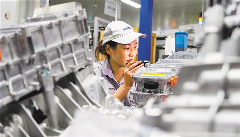 ▼智新科技电驱动工厂装配车间作业人员进行总成下线检查。智新科技是东风公司从事电控、电机、电池、智能域控产品研发的重要企业,现已形成“1+3”事业布局,打造行业领先动力总成。
