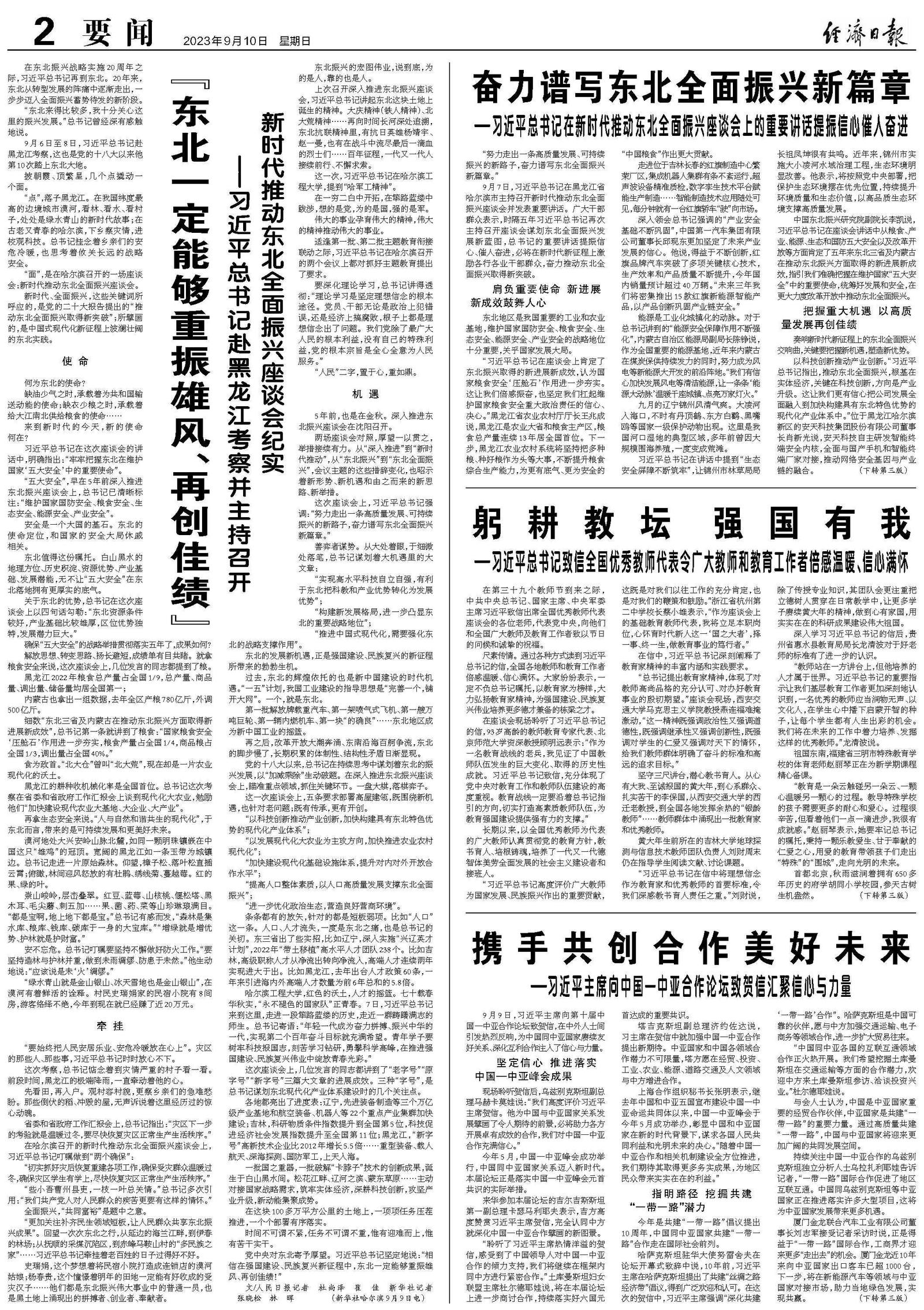 “努力走出一条高质量发展、可持续振兴的新路子,奋力谱写东北全面振兴新篇章。”