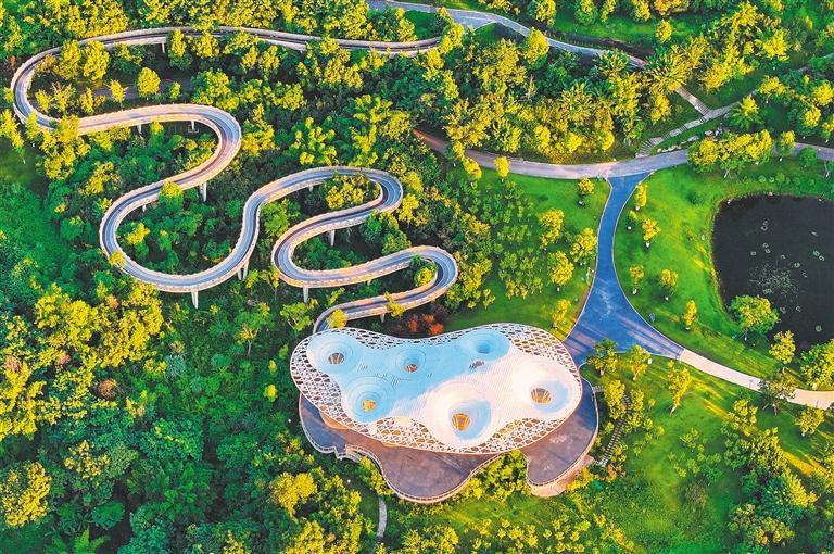 ▼7月17日,航拍重庆两江新区礼嘉智慧公园云顶步道。该公园是全国首个以“5G+物联网”为主题的智慧公园,公众可以在园区体验并学习使用AR运动、VR虚拟驾驶、远程医疗等高新技术产品。