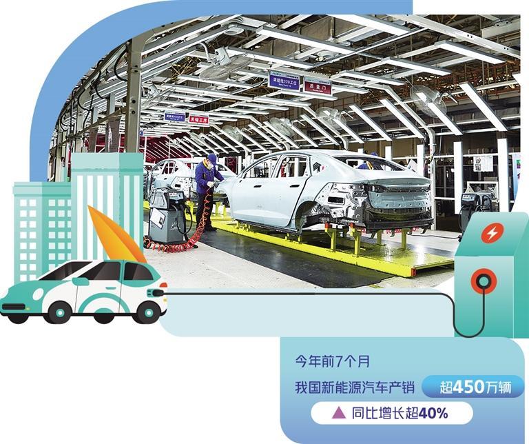 新能源汽车是全球汽车产业转型升级、绿色发展的主要方向,也是我国汽车产业高质量发展的战略选择。今年前7个月,我国新能源汽车产销超过450万辆,同比增长超过40%。其中,出口63.6万辆,同比增长1.5倍,成为我国经济一个强劲增长点。