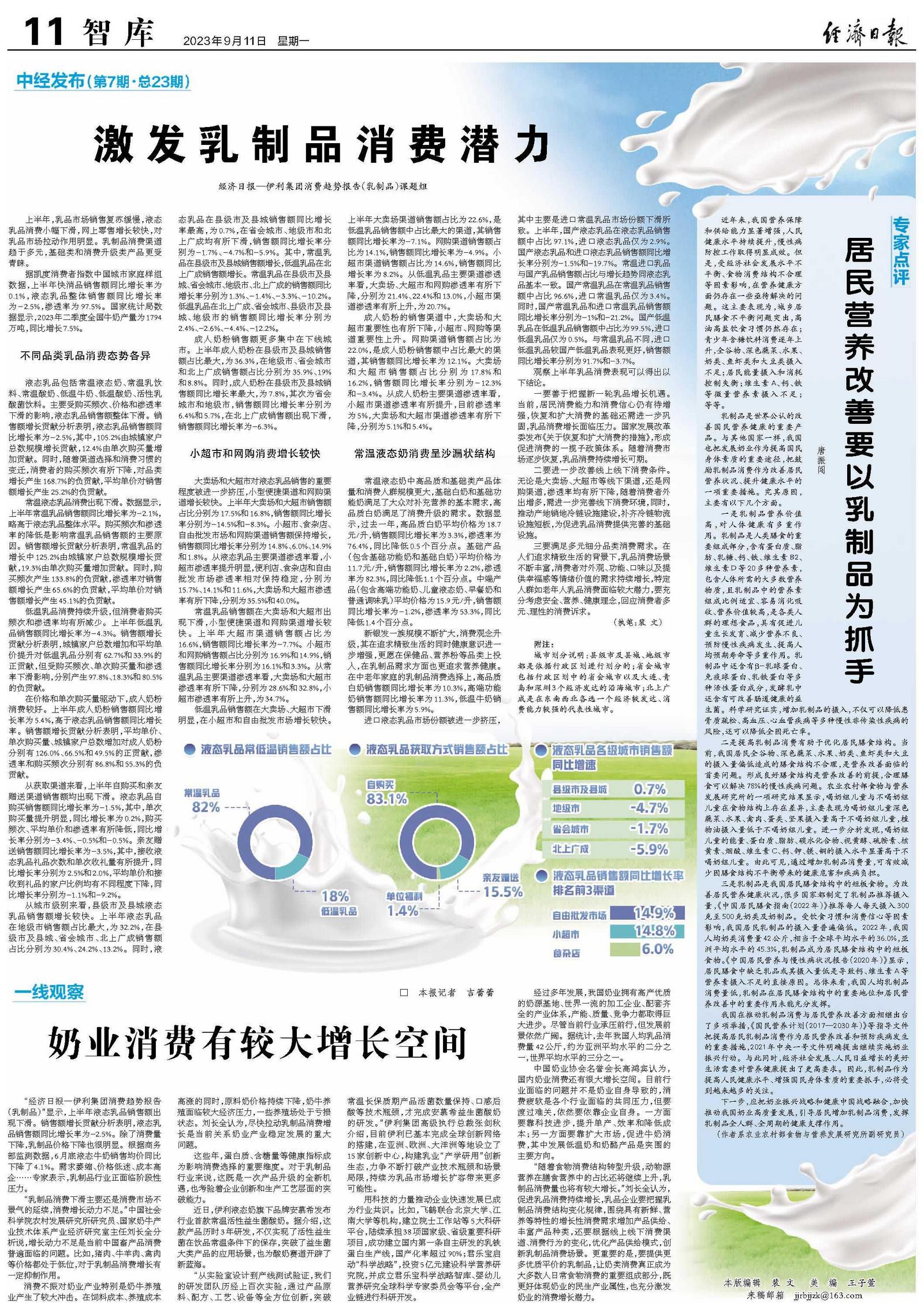 “随着食物消费结构转型升级,动物源营养在膳食营养中的占比还将继续上升,乳制品消费量也将有较大增长。”刘长全认为,促进乳品消费持续增长,乳品企业要把握乳制品消费结构变化规律,围绕具有新鲜、营养等特性的增长性消费需求增加产品供给、丰富产品种类,还要根据线上线下消费渠道、消费行为的变化,优化产品供给模式,创新乳制品消费场景。更重要的是,要提供更多优质平价的乳制品,让奶类消费真正成为大多数人日常食物消费的重要组成部分,既更好体现奶业的民生产业属性,也充分激发奶业的消费增长潜力。
