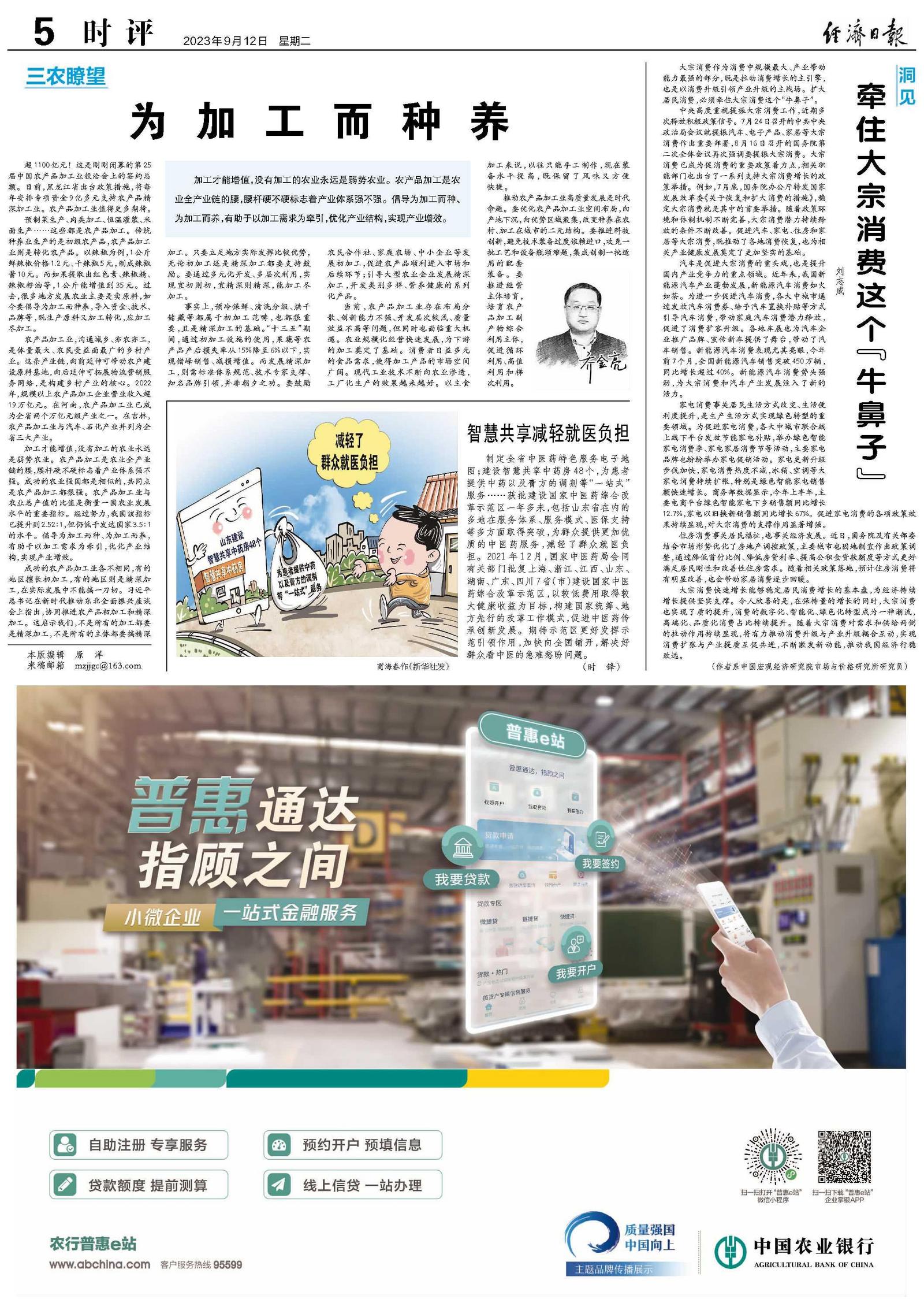 大宗消费快速增长能够稳定居民消费增长的基本盘,为经济持续增长提供坚实支撑。令人欣喜的是,在保持量的增长的同时,大宗消费也实现了质的提升,消费的数字化、智能化、绿色化转型成为一种潮流,高端化、品质化消费占比持续提升。随着大宗消费对需求和供给两侧的拉动作用持续显现,将有力推动消费升级与产业升级耦合互动,实现消费扩张与产业提质互促共进,不断激发新动能,推动我国经济行稳致远。