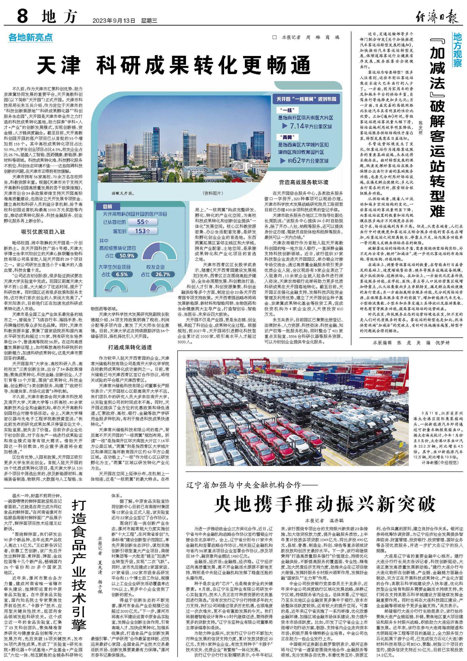 不久前,作为天津市汇聚科创优势、助力京津冀协同发展的重要平台,天开高教科创园(以下简称“天开园”)正式开园。天津市科技局局长朱玉兵介绍,作为定位于天津市的“科技创新策源地”“科研成果孵化器”“科创服务生态园”,天开园是天津市举全市之力打造的科技成果转化基地,助力探索“学科+人才+产业”的创新发展模式,实现创新链、资金链、人才链深度融合。截至目前,天开高教科创园开园的落户项目已从首批的55个增加到153个。其中高校成果转化项目占比50.9%,大学生创业项目占比6.5%,校友企业占比26.7%,涵盖人工智能、医药健康、新能源、新材料等领域。科技成果转化难、科技孵化服务不到位、科创生态环境不佳……这些阻碍科技创新的问题,在天津市正得到有效缓解。